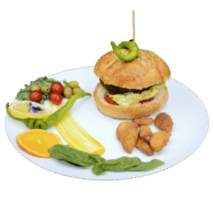 (کاهو، خیار، گوجه گیلاسی، نعنا ،جعفری،تربچه ، پیازچه ، نان پیتا)